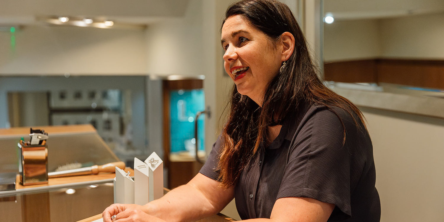 Exceptional customer service. We bought an engagement ring and both of our wedding rings from here, having spent hours across several visits. On each visit we had a very polite (and patient) member of staff who would answer all of our questions and help us to find the styles we wanted. At no point did we feel under any pressure or obligation to buy. We had a really enjoyable experience and would thoroughly recommend this jewellers to others.