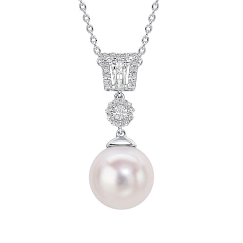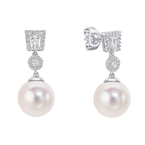 Diamond Set Heart Stud Earrings with Pearl in Silver.Vendor:Diamond Set Heart Stud Earrings with Pearl in Silver.D for Diamonds- Regular price