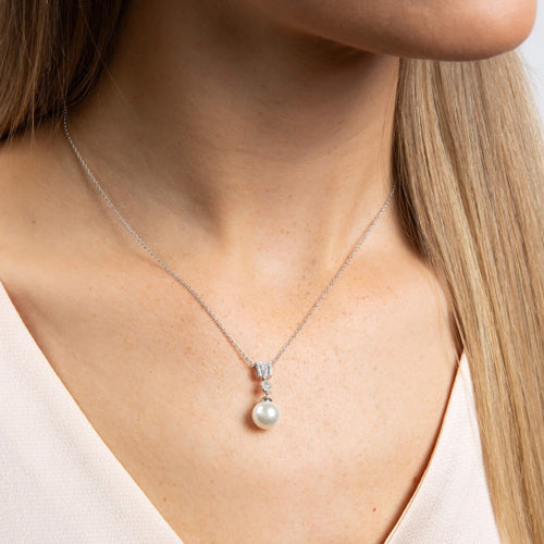 Simulated Pearl and Cubic Zirconia Bracelet in Silver.Vendor:Simulated Pearl and Cubic Zirconia Bracelet in Silver.Diamonfire- Regular price