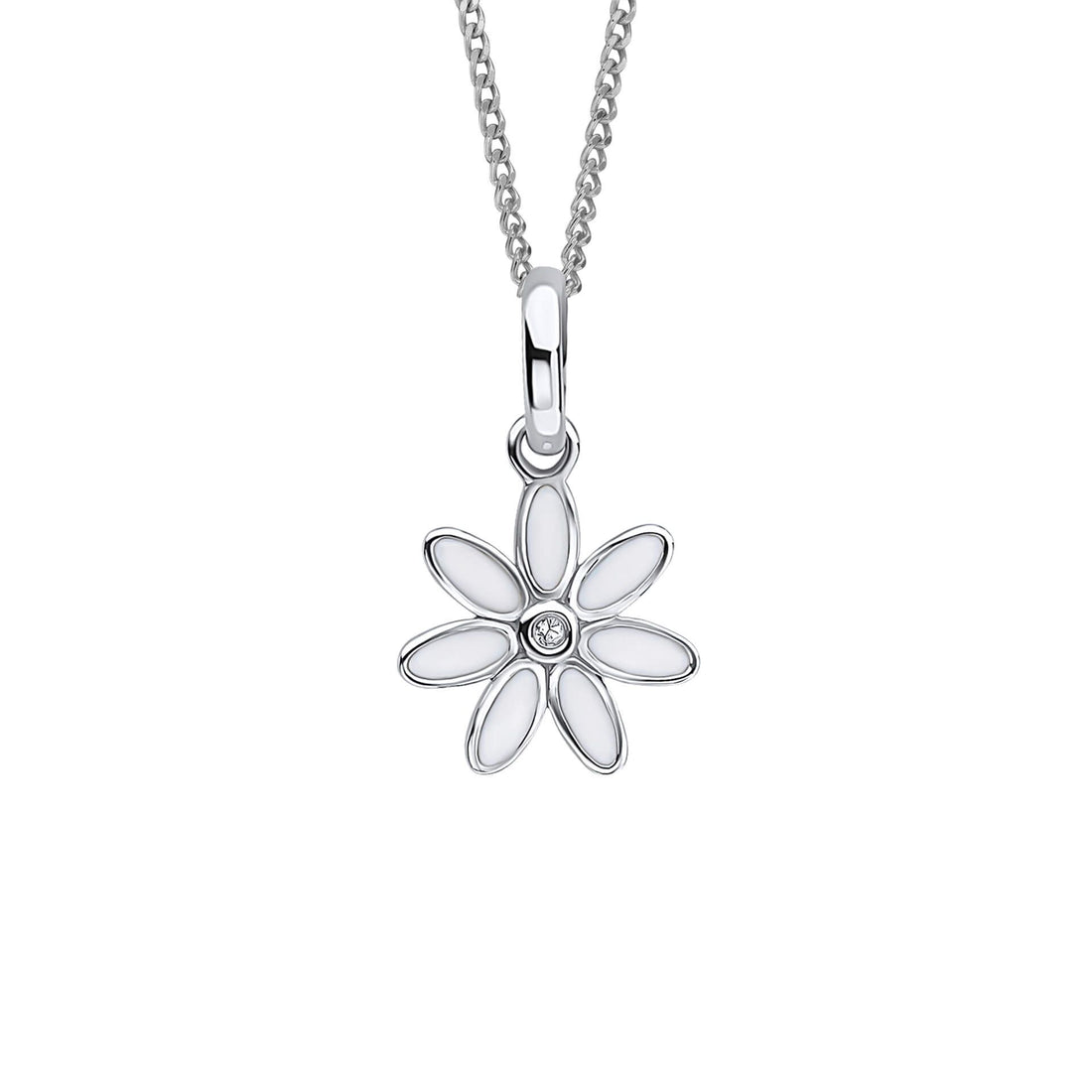 Diamond set enamel daisy pendant and chain in silverVendor:Diamond set enamel daisy pendant and chain in silverD for Diamonds- Regular price