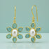 Green Chalcedony and Pearl Flower Drop Earrings in Gold Plated Vermeil