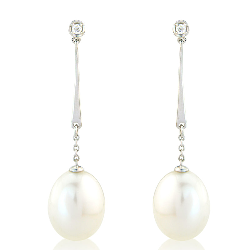 Pearl and diamond drop earrings in 9ct white gold 0.02ct.Vendor:Pearl and diamond drop earrings in 9ct white gold 0.02ct.PA Jewellery- Regular price