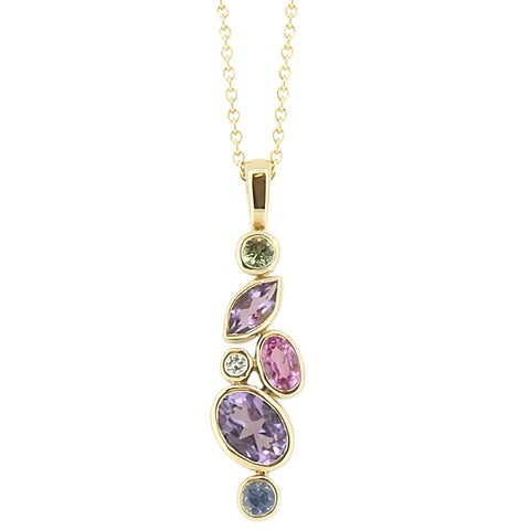 Multi-gemstone drop pendant and chain in 9ct goldVendor:Multi-gemstone drop pendant and chain in 9ct goldPA Jewellery- Regular price