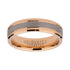 A brushed silver center sits alongside shiny rose gold IP plated edges to create an elegant yet modern look. The polished rose inner band and comfortable fit make it ideal for a wedding band or an everyday dress ring.