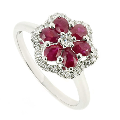 Ruby and diamond floral cluster ring in 18ct white goldVendor:Ruby and diamond floral cluster ring in 18ct white goldPA Jewellery- Regular price