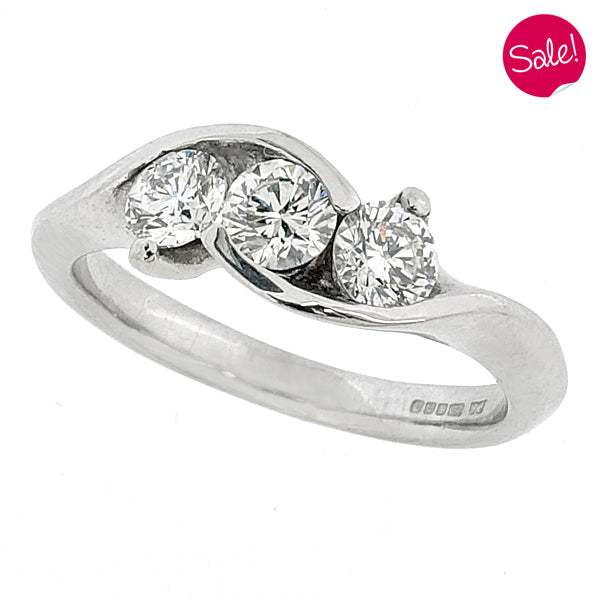 Diamond crossover three stone ring in 18ct white gold, 0.75ct