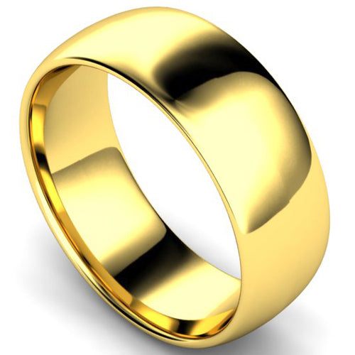 Edged traditional court profile wedding ring in yellow gold | 8mm width