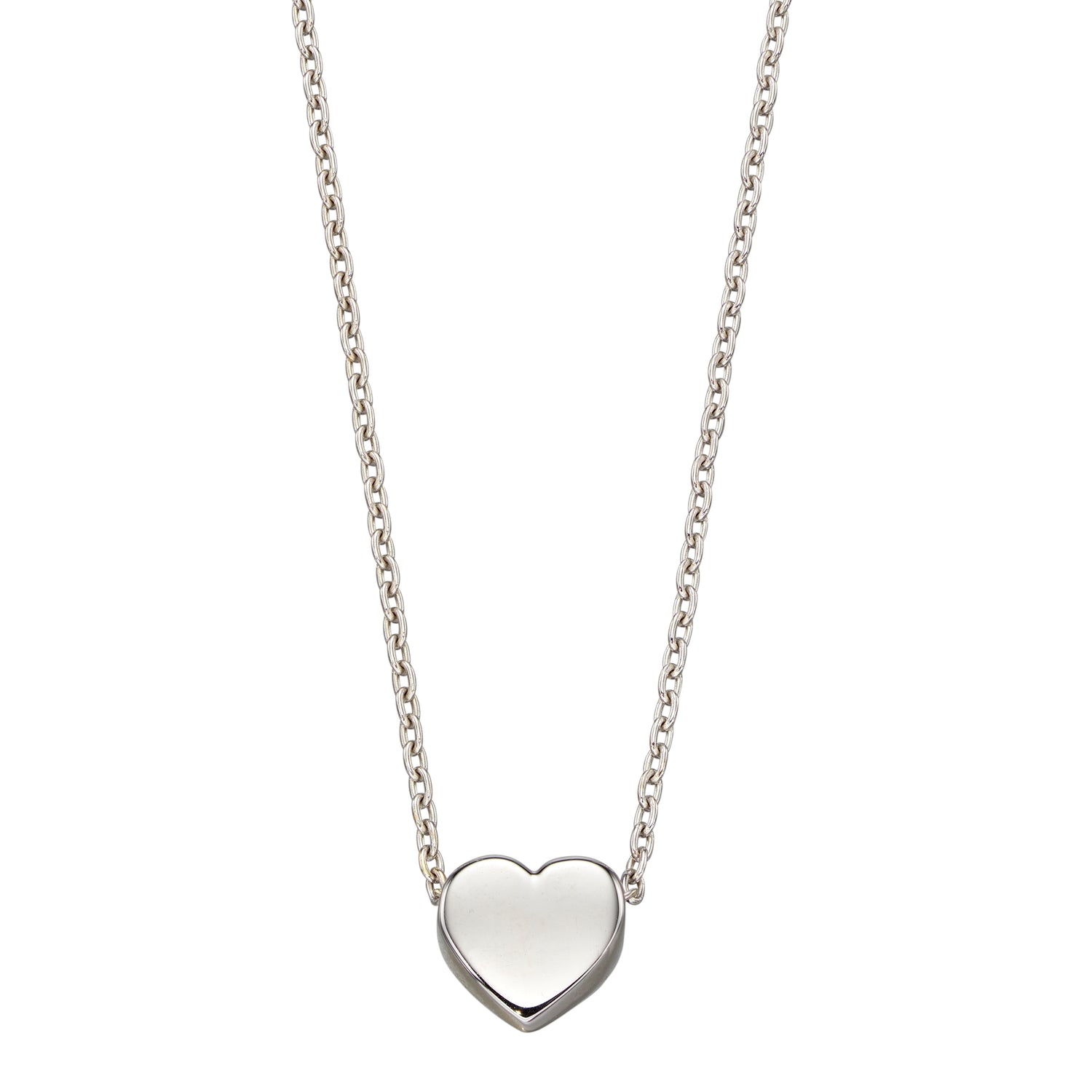 A pretty heart-shape design in 9ct white gold with a fine trace link chain.The highly polished finish of the heart provides a lovely reflective finish.