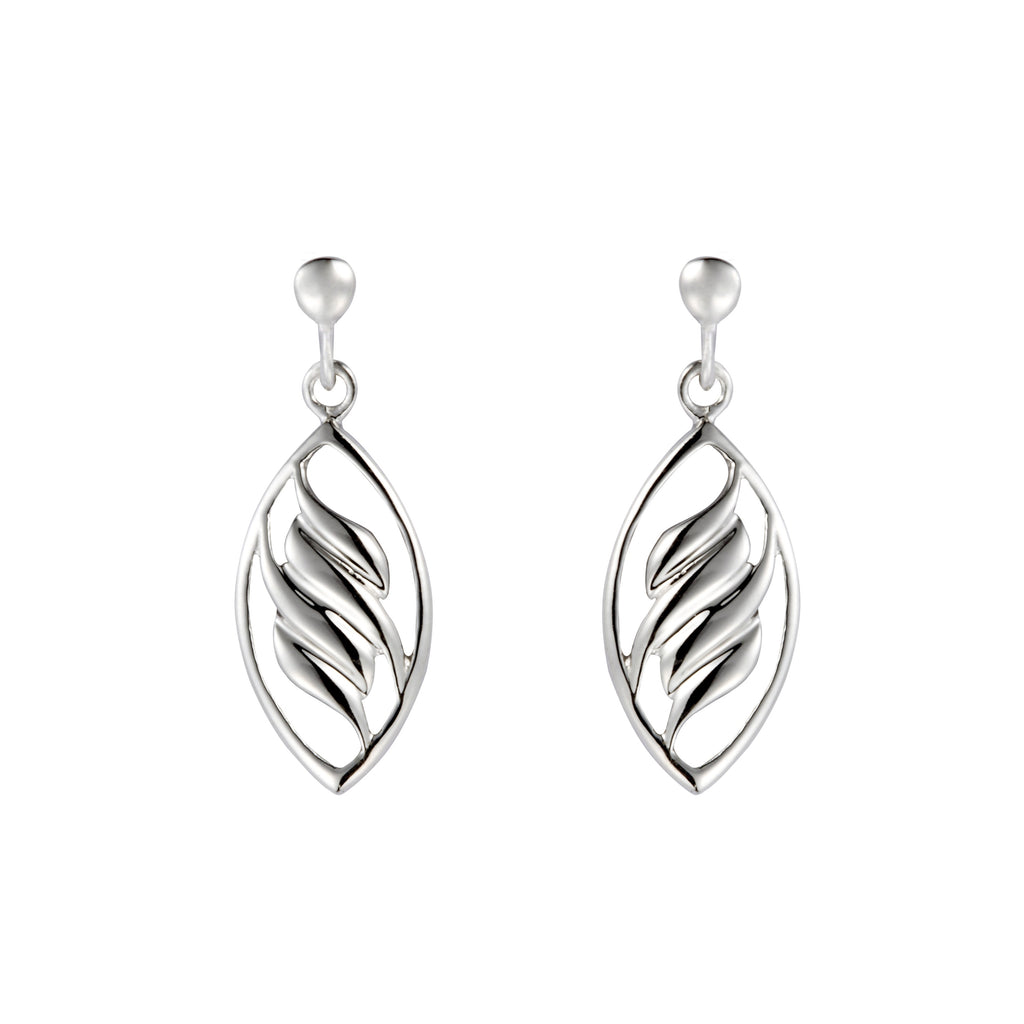 A twist design centre and marquise shape frame create an elegant look in these 9ct white gold drop earrings.  Perfect if you prefer a drop but want a subtle, everyday design.
