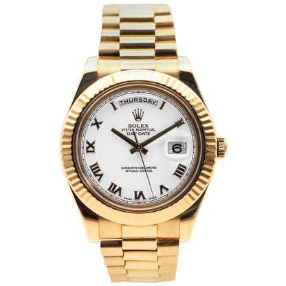 Probably the most recognisable luxury watch in the world, the Rolex Day-Date has graced the wrist of countless celebrities and world leaders. This modern incarnation has a 41mm case rather than the original 36mm which gives it a more modern look whilst keeping the classic aesthetics that make the Day-Date so special.
